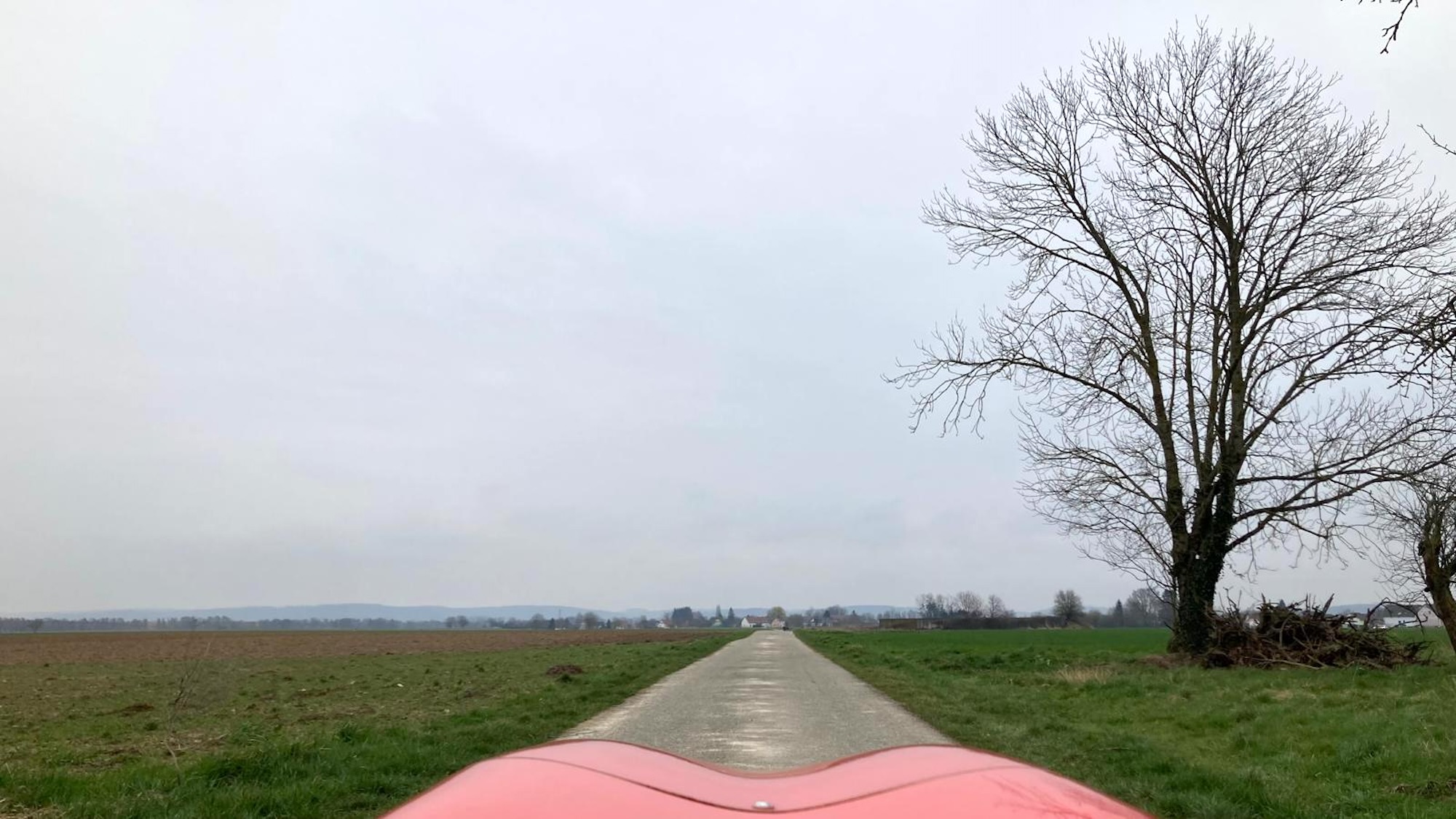 Arrêt juste pour la photo devant l’entrée de l’église de Grentzingen, l’espérance (chrétienne) étant… un de mes moteurs ! Longue discussion avec le monsieur qui venait d’en fermer la porte, intrigué par l’engin. C’est un des avantages du vélomobile : il crée des rencontres, des échanges, on se parle davantage 😉